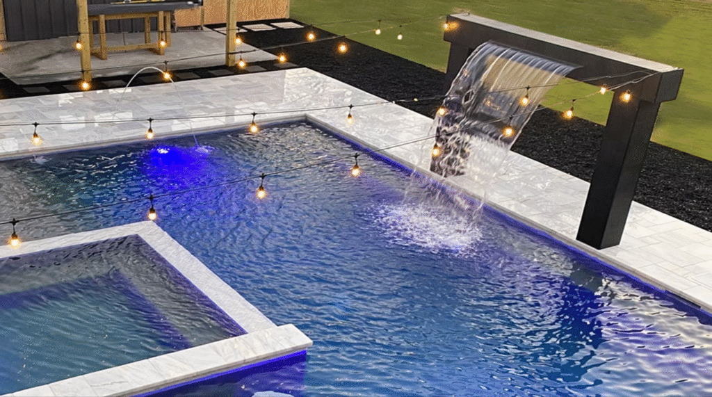 At Abhee Pools, we specialize in crafting premium water features and luxurious aquatic spaces tailored to your lifestyle. Our expertise includes the construction of lazy rivers, custom-designed swimming pools, and visually stunning infinity pools that blend seamlessly with the horizon. We also take pride in our intricate cascade tile art, adding a unique aesthetic element to every pool we build. To enhance the ambiance and safety of your pool, we install high-quality underwater lighting that transforms the experience both day and night. From concept to completion, Abhee Pools delivers unmatched craftsmanship and innovation in every project — and that’s just the beginning. We offer many more personalized features to bring your dream outdoor space to life.
